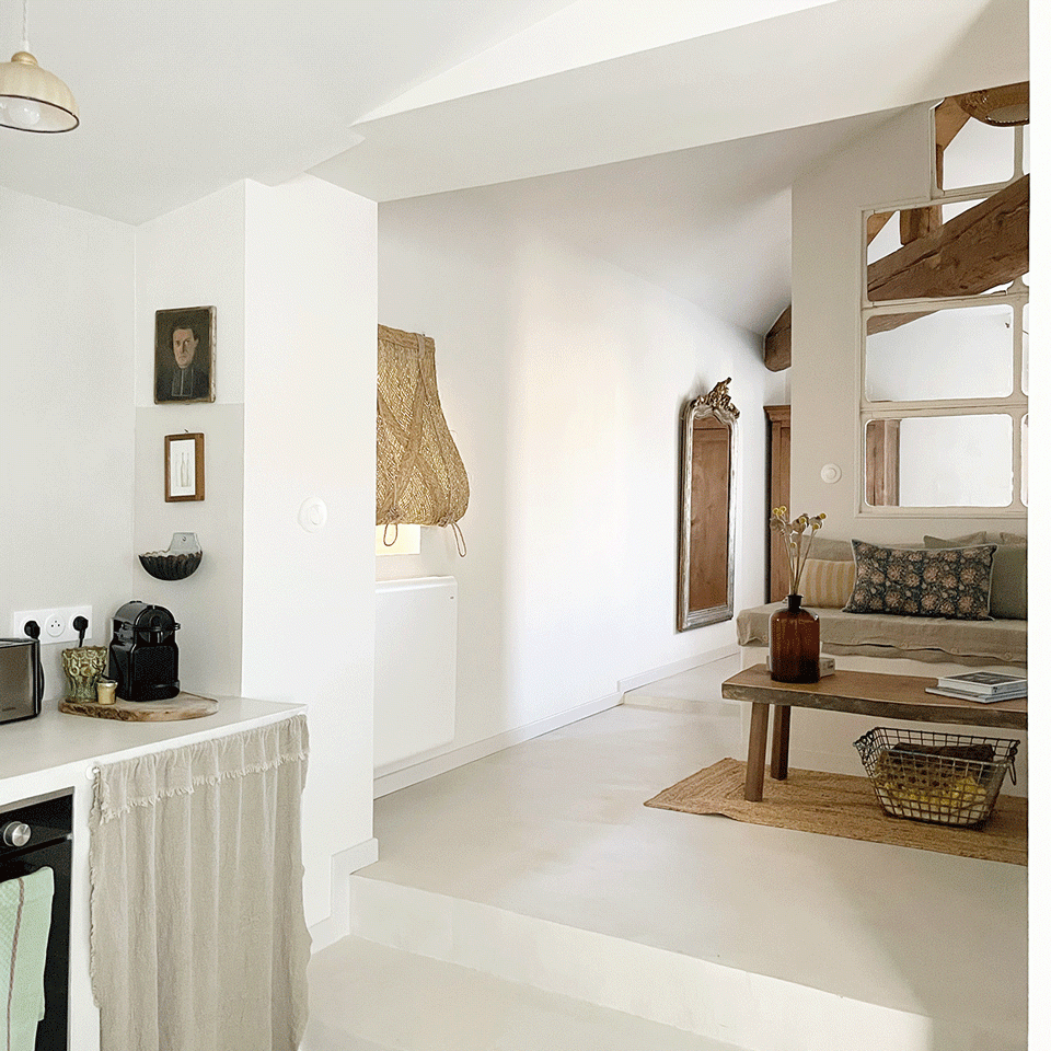 Envie de chine ? Vous pouvez aller à Bruxelles… ou à l’Isle-sur-la-Sorgue ; question de saison… et de feeling ! Là, on a plutôt envie de Sud… Et justement cet appartement situé à deux pas du canal, 40 Rue De l’Anguille imaginé par Clotilde Vente pour échappée en duo sent bon le Sud. Un Sud respectueux, produits bio et locaux et surtout sans clim, orientation et isolation font parfaitement le job, un Sud lumineux et enjoué.