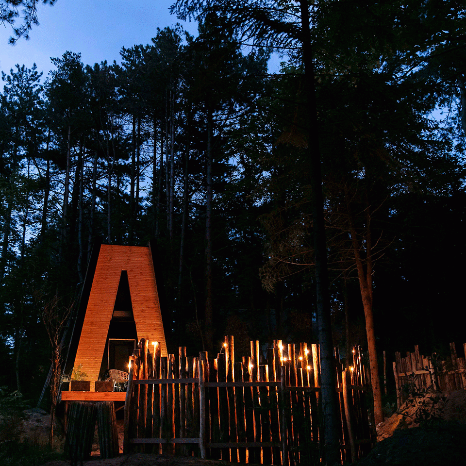 Cette cabane a tout d’un tipi, version archi pensée et dessinée. Au cœur de la forêt, entre les allées des Fauvettes et des Mésanges, depuis l’une des 2 terrasses, dont une avec filet suspendu, on y écoute le silence puis les chants des oiseaux, dans le bain nordique on y appuie sur pause. Totalement éco conçu, tout a été mis en œuvre pour réduire au maximum notre empreinte : matériaux responsables et durables, bardages non traités, pas de fondations, zéro déchets & produits locaux. L’engagement est aussi complet que réel, le résultat bluffant. A cette cabane pouvant accueillir jusqu’à 4 personnes s'est ajouté un refuge pouvant accueillir jusqu’à 6 personnes (4 adultes)