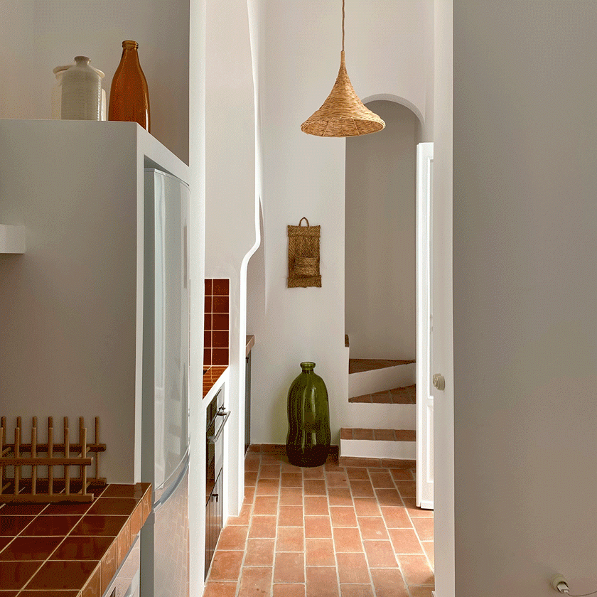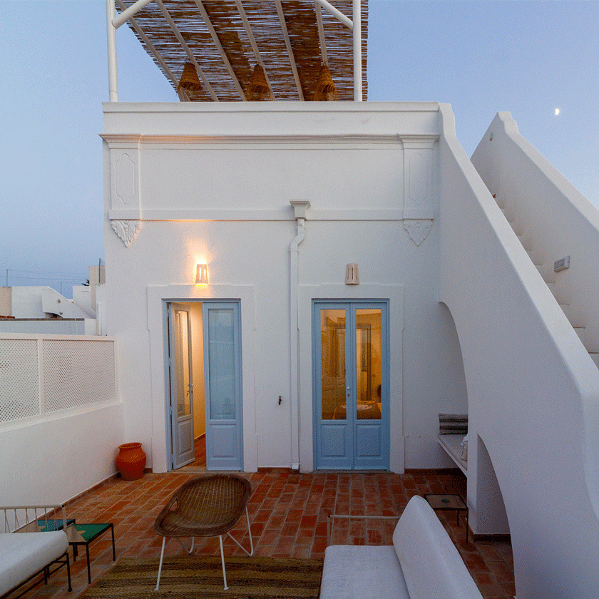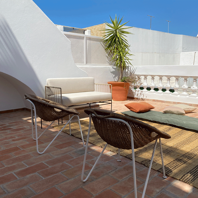 Dans cette ville de pêcheurs, au cœur de l’Algarve, les maisons sont toutes blanchies à la chaux. Tout devient alors plus lumineux. Cette jolie maison, modeste, du centre historique n’echappe pas à la règle. Un patio au rez-de-chaussée pour le café matinal, et un toit terrasse avec petit bassin et pergola pour admirer les couchers de soleil ? Entre les deux, des chambres claires, des choix de mobiliers modestes, là encore, mais emplis d’esprit : une échelle de meunier pour accrocher ses serviettes, une dame-jeanne, un lit d’enfant en fer forgé, des céramiques bien sûr, ici ou là… on en ferait bien de cette maison-là son port d’attache pour quelque temps…
