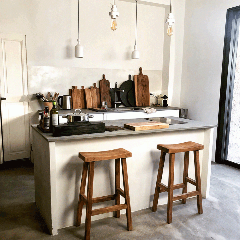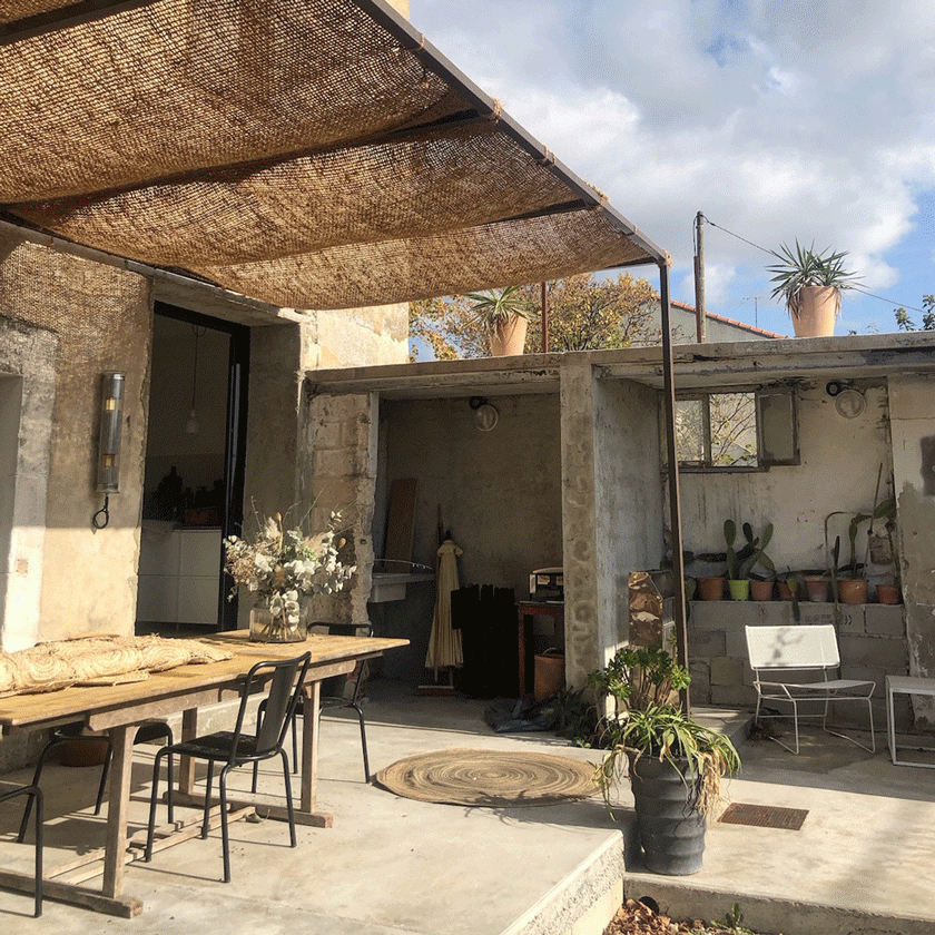 La Casa Pernoiseest la mise en application du style de vie mis en scène dans les boutiques créées par Lau de Casalil. Aux Maison Pernoise, l’une à Pernes-les-Fontaines, l’autre à Montpellier (Marché du Lez), les fans de déco trouvent un mix de meubles, vaisselles, textiles… de l’artisanat, de l’ethnique, des textures, des matières et couleurs naturelles, un style bohème qui s’adapte parfaitement à l’esprit de la région. La Casa reprend donc tous ces codes dans un cadre minéral fait vielles pierres et de béton brut, ponctué de plantes grasses et d’une piscine-bassin rafraichissante. Une maison sans aucune ostentation où se rencontrent le contemporain et le rustique, une maison qui a de la patine, qui montre ses cicatrices et usures et où chaque objet, soigneusement choisi, raconte une histoire.