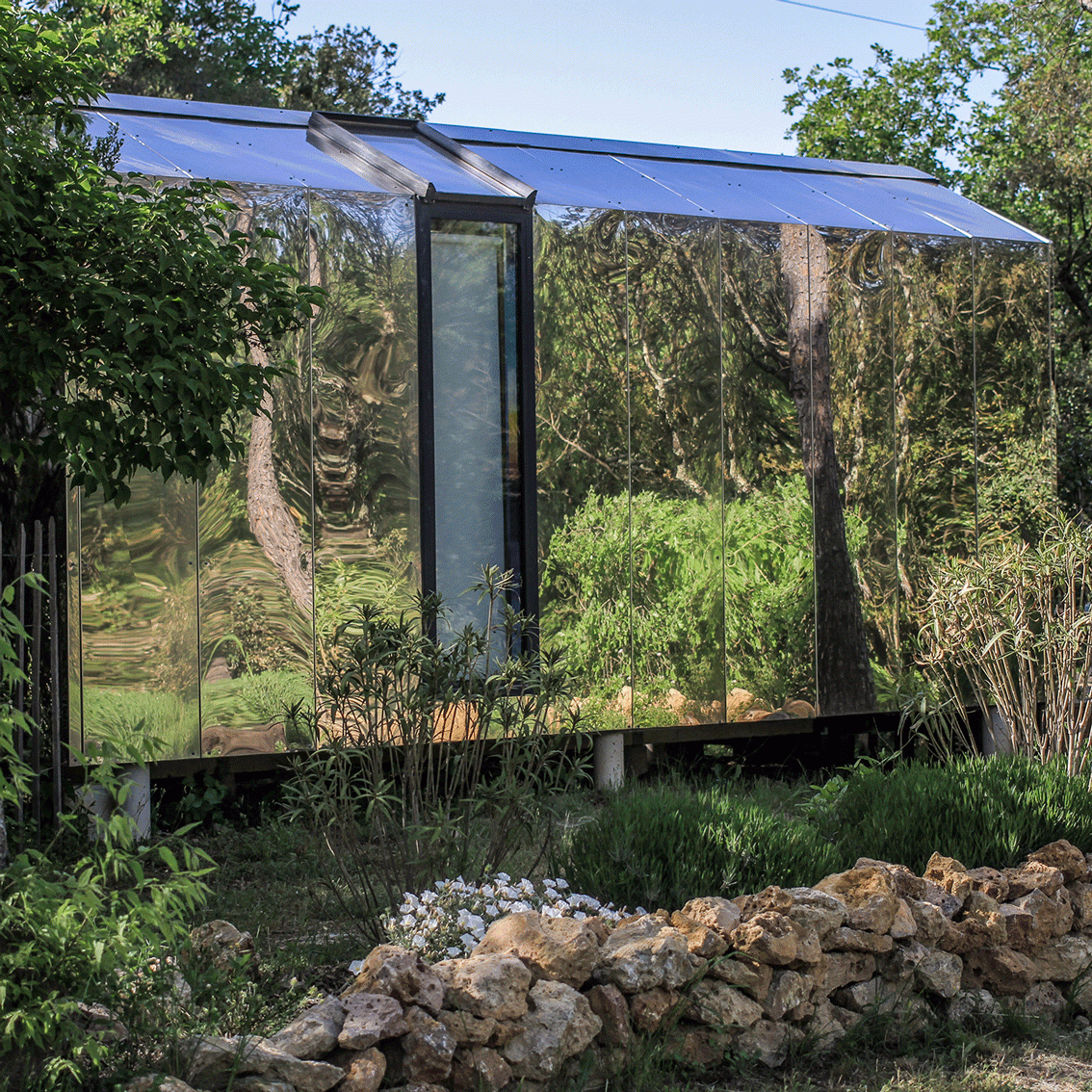 Tout autour, le domaine, 5 hectares de nature ourlée de bois de chênes verts et blancs et de vignes, avec jardins aménagés en restanques; en son cœur le Jas, taille XXL dans lequel ont été imaginés des appartements en duplex. Et dans un coin, un peu caché, à l'abri des regards, une cabine qui semble totalement se fondre dans le décor. Cette Station C.I.E.L. a été imaginée par Arnaud Sarteur, votre hôte, également architecte. Parfaitement mobile, écoresponsable, posée sans aucune fondation, donc sans impact sur le territoire, avec son bardage en poli miroir, elle accueille jusqu'à 2 voyageurs qui désirent vivre en pleine autonomie et bien planqués. Au loin, dans une habile perspective, apparaît un village (Bras), typique de cette Provence-là, que l'ont dit verte.
