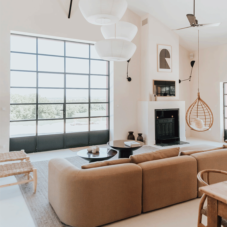 Dans ce hameau de poche, perché sur une colline, ils sont seuls. Seuls à jouir de la vue sur cette campagne du Périgord, dit Pourpre, terre de vins (Montbazillac) et de bastides. Ils, elle, ancienne styliste de mode reconvertie dans la déco, lui, investisseur immobilier, ont craqué pour cet ensemble de maisons assorties d'un hangar agricole, ont quitté Paris et l'Oise pour s'installer un pied ici, un pied à Hossegor. Du hangar, ils ont fait une maison dite La Grange, aux allures de loft contemporain. D'une des maisons, ils ont fait Bel-Air, une maison au style plus bourgeois. La Grange peut accueillir jusqu'à 12 personnes, Bel-Air jusqu'à 15 personnes; chacune est assortie de sa piscine (au sel, chauffée et sécurisée), l'une regarde vers l'est, l'autre vers l'ouest. Dans les deux, les tons sont clairs, en camaïeux, parfois joliment poudrés. Surtout, Caroline a pensé, en imaginant ces maisons, aux enfants. Une cabane, interdite aux adultes, pour lire, planquée dans une salle de jeux, des lits superposés sur 3 niveaux, des jouets et des jeux indoor et outdoor...