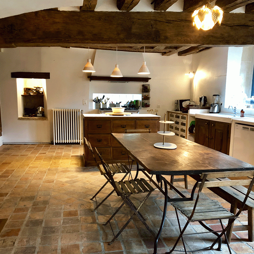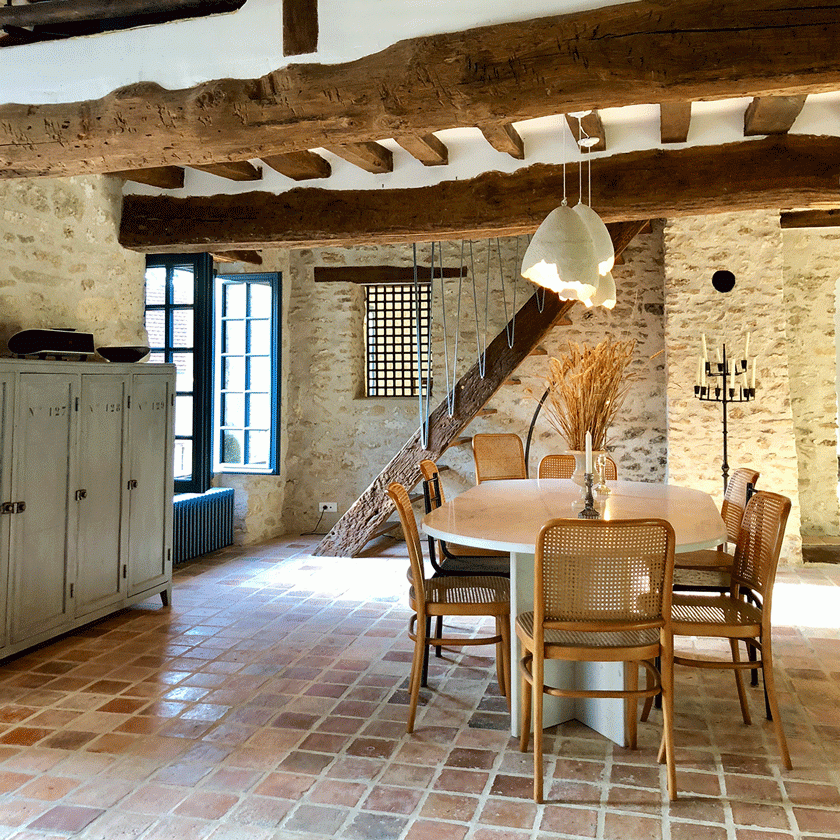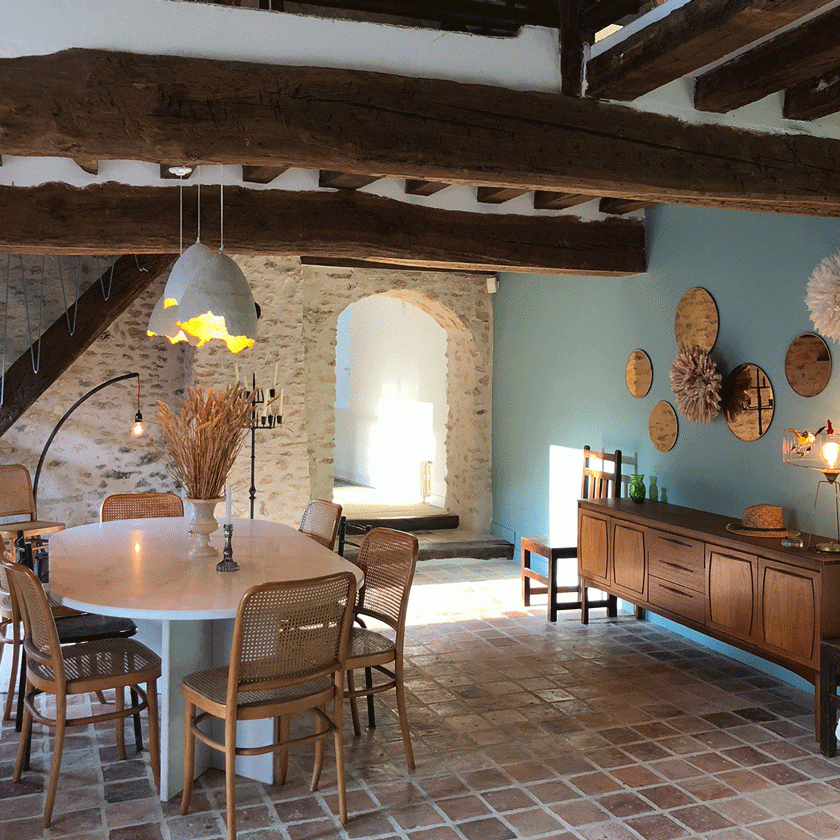 La Belle Vie des Viaux est la maison dont rêvent de nombreux parisiens. Assez près de la capitale pour y accéder en un clin d’œil (moins d’1h), assez loin tout de même pour être en pleine nature. Cette belle et grande demeure, ancienne ferme jouxtant le château d’Alincour, Estelle et Martin Vial l’ont achetée en 2017 et rénovée d’abord pour eux-mêmes, même s’ils envisageaient déjà de la mettre en location. Autour de son vaste séjour (6m de hauteur) elle se déploie sur différents niveaux. On s’y sent instantanément chez soi grâce à une déco qui fait oublier le manque d’âme de nombreuses maisons à louer. C’est Estelle qui a chiné les meubles qui s’y trouvent, ajoutant une touche de modernité ici, un élément plus personnel là. Attentive au moindre détail, elle a même mis dans les salles de bain des produits qui portent le nom de la maison. Dehors, un vaste jardin, la forêt tout près et un peu plus loin une grange qu’ils viennent d’aménager pour en faire un lieu d’accueil pour des réunions pro, des stages de yoga…