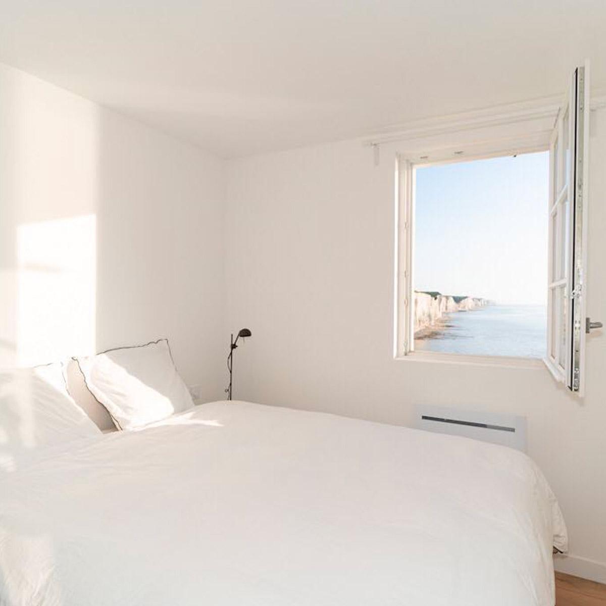 Chez Brise du Large, ,Maison d'Ault, on mise tout sur le décor naturel, la vue sur la Manche et la baie de Somme. Et on a bien raison! L'oeil s'échappe, les pensées s'évandent plus facilement dans cet intérieur presque immaculé ou la simplicité sert d'écrin. Seule compte alors cette brise qui entre par une fenêtre ouverte et vient nous donner un nouveau souffle. Seul ou quasi sur la falaise avec l'infini pour seul point de mire.