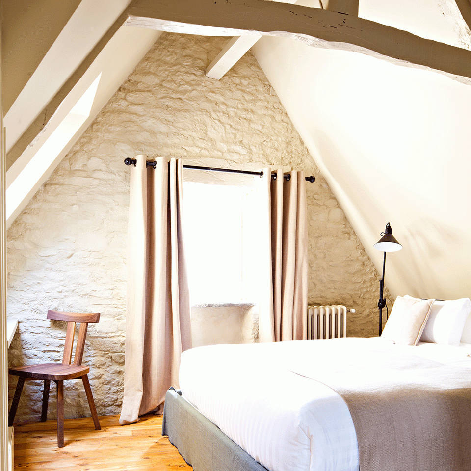 Un porche et des pans de bois, un jardin en arrière, un esplanade devant, celle d’une basilique, la Rance à ses pieds, la mer si on suit le fleuve dans le bon sens (vers le Nord)… Au cœur de Dinan, ville d’ateliers d’artistes ou d’artisans, cette maison rend hommage à l’un de ces nombreux explorateurs bretons un peu oubliés/négligés par l’Histoire. Jérôme célèbre a sa manière Auguste Pavie, né dans cette maison du 15ème siècle. Tout en restant parfaitement contemporain dans les choix de mobiliers, dans les formes comme dans les coloris, il nous emmène sur les traces de « l’explorateur aux pieds nus » vers ce qu’on appela longtemps l’Indochine. Aussi charmant que touchant.