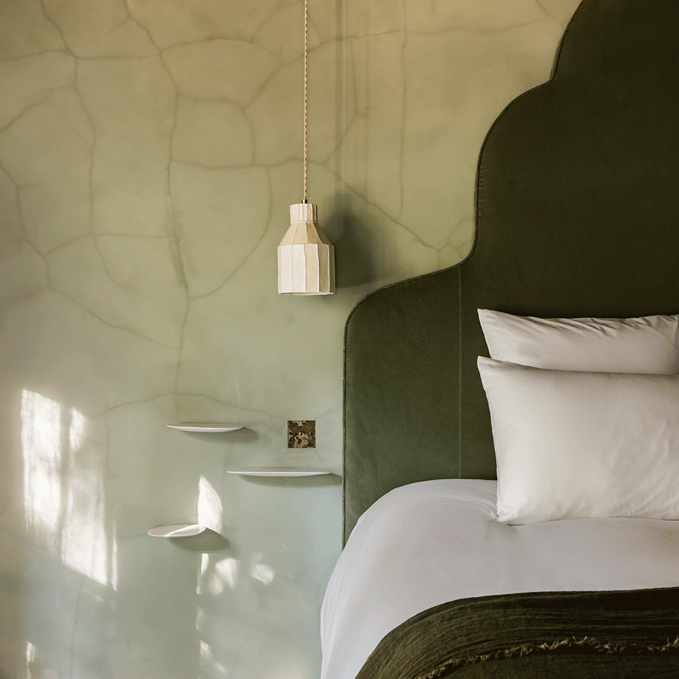 De cette ancienne tannerie gersoise, de cette ancienne manufacture royale construite au milieu du 18e siècle par Pierre Racine, Christele Ageorges, longtemps styliste déco pour papiers glacés, a fait un rêve. Un rêve au long cours, car il a fallu 3 ans de travaux pour redonner vie à cet ensemble longtemps abandonné. À La Manufacture Royale de Lectoure, une aile accueille désormais un gîte pèlerin (nous sommes sur le chemin de Saint-Jacques de Compostelle) avec quatre cellules de 2, 3 ou 4 lits, une autre une maison à louer pour jusqu’à 15 personnes, une autre, enfin, 5 chambres d’hôtes avec vue sur les Pyrénées, là vers le sud. Murs chaulés dans des tons subtils et doux inspirés de la nature environnante (ce rose poudré qui reprend la couleur du ciel certains matins !), papiers peints panoramiques, pièces de mobilier résolument contemporaines mais pas que, tout est si bien pensé que chaque élément de décor semble avoir trouvé dans cet écrin sa juste place…