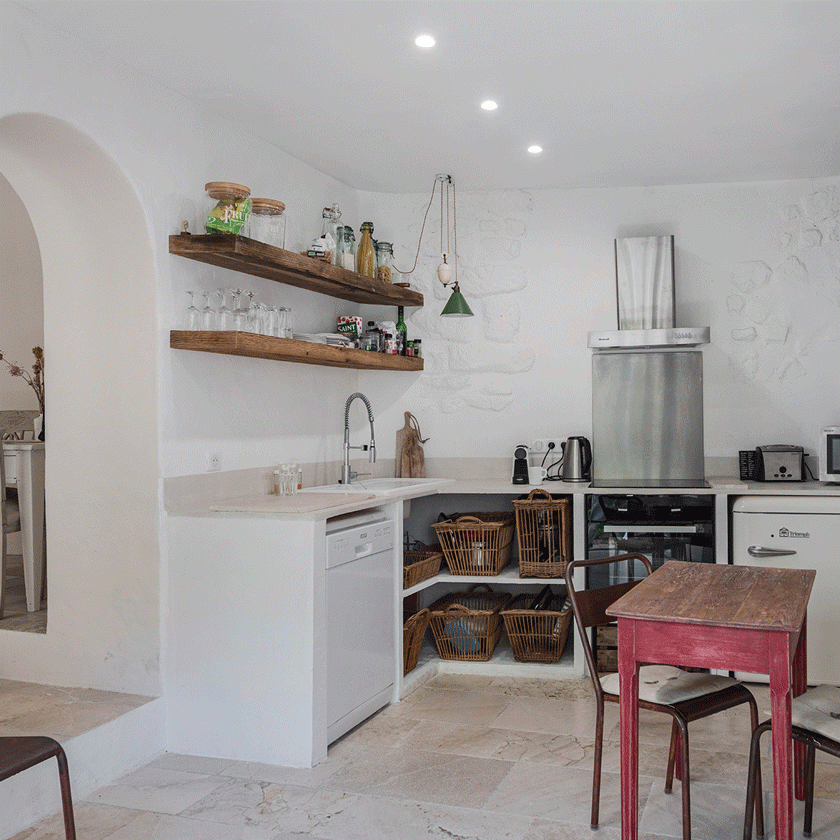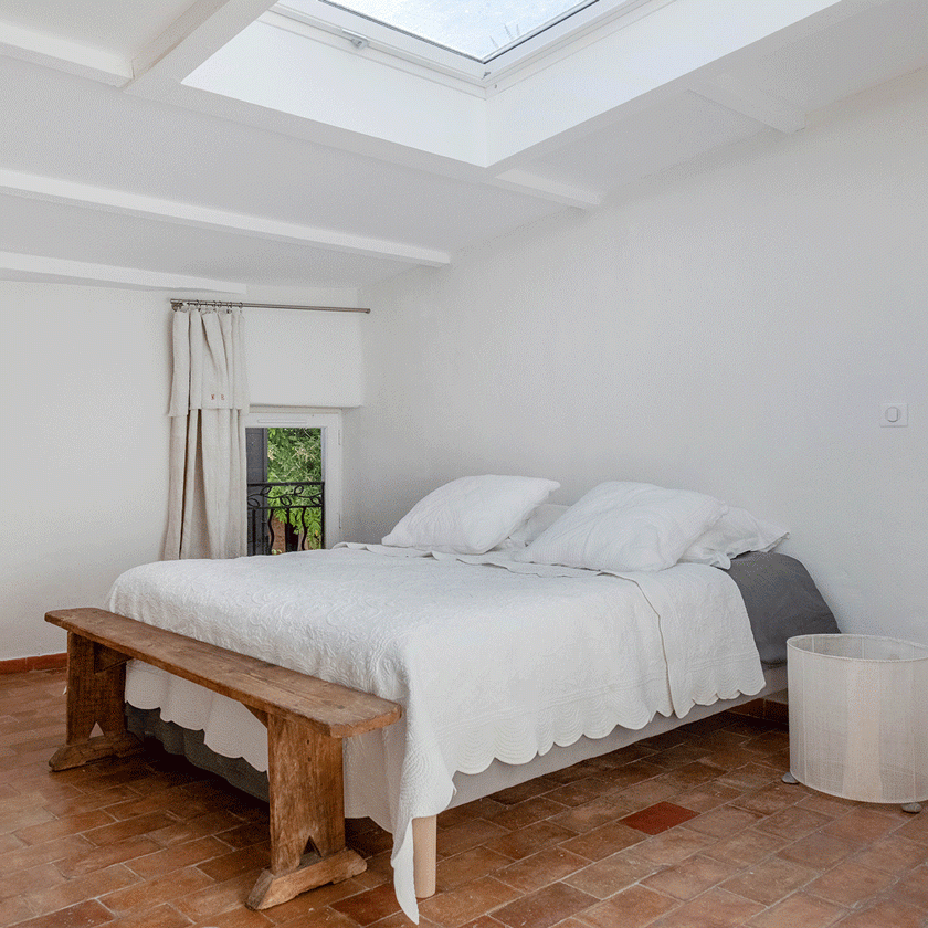 Un village, l’un des plus beaux du Luberon, Lourmarin, et nichée dans l’une de ses petites impasses, une maison. Lumineuse, fraiche l’été, cocon l’hiver. Ici, les partis-pris en termes de déco sont très clairs, limpides; rien de très étonnant, pour la propriétaire, Nathalie Vingot Mei, la déco c’est un métier. Son métier. Alors tout se télescope, une chaise Directoire, un fauteuil d’osier des 50’, un banc de ferme, un jarre en terre cuite, un boutis… sans jamais se heurter ni fatiguer l’œil. Tout semble ici à sa place et surtout depuis toujours; comme dans une maison de famille. La Suite d’Amour est présentée comme le premier opus d’une nouvelle collection de maisons de vacances. La prochaine : déjà annoncée, et en chantier, à Cucuron, tout à côté.