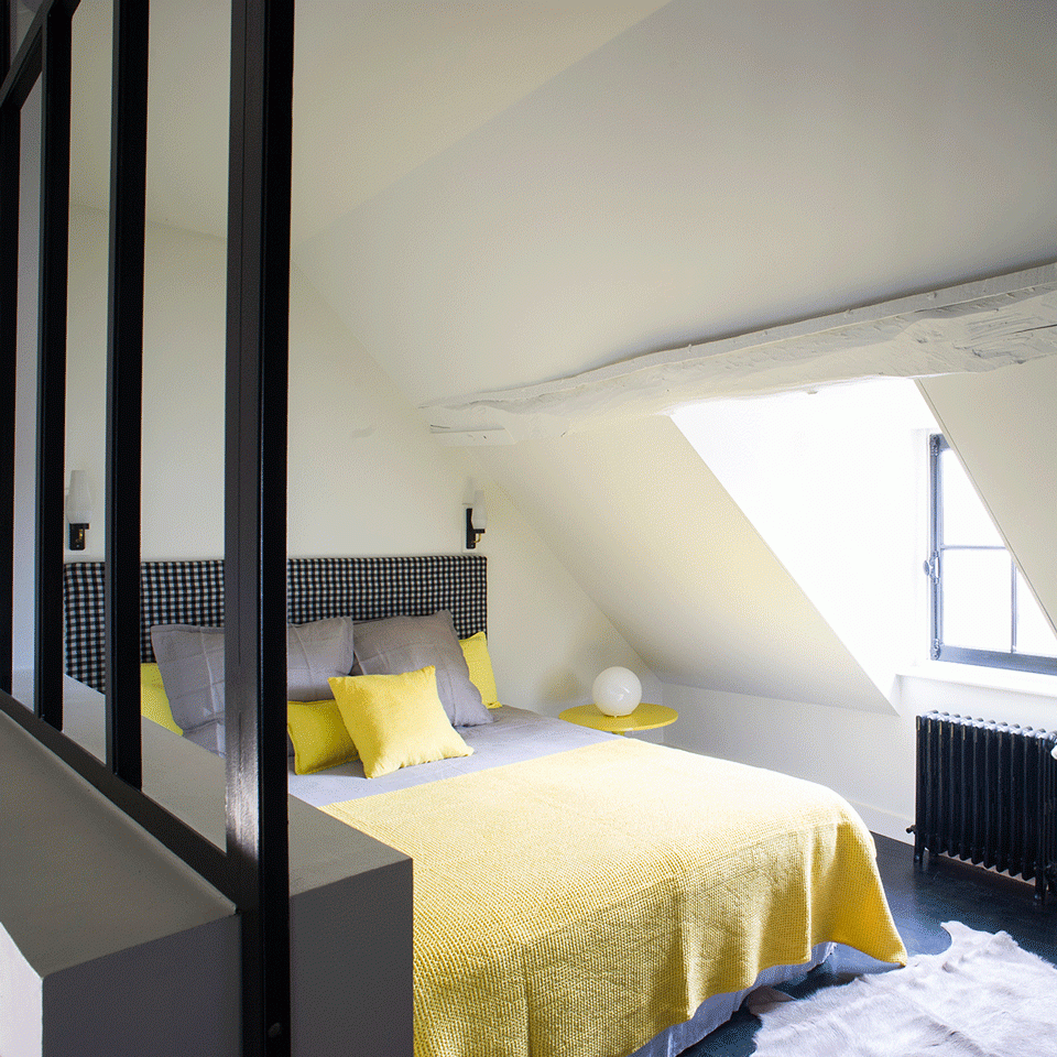 A rien du château de Guillaume le Conquérant, un hôtel particulier, 3 étages et 3 ambiances. Trois suites Chez Laurence du Tilly, une plutôt haussmannienne, l’autre plus contemporaine et enfin la dernière, plus bohème, sous les toits, avec sa terrasse taille XS. Laurence, styliste mais aussi créatrice (allez voir son site et ses très jolies tables basses !), a imaginé ici 3 lieux à l’identité affirmée, lumineuse et joyeuse.