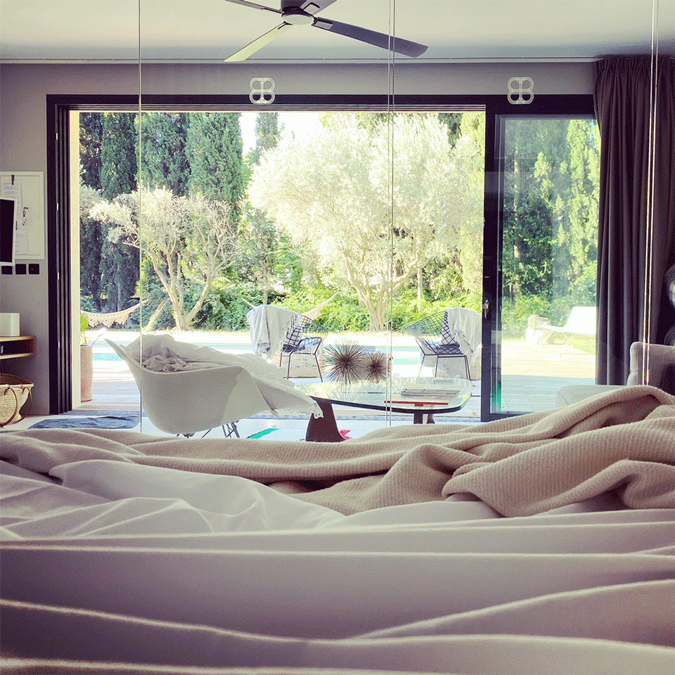 De ce domaine familial en cœur de ville reste un hectare de parc, avec grands arbres, maisons et dépendances. Dans un ancien pigeonnier, auquel avait été accolé un cube d’esprit très californien, Pascale a imaginé une maison d’hôtes ultra contemporaine et lumineuse pouvant accueillir jusqu’à 3 personnes, avec piscine privée pour les beaux jours et poêle à bois pour les soirées d’hiver. A @la_roselière elle a ajouté Alice et Eugene. Une deuxième maison, pour jusqu’à 4 personnes, où les volumes sont tout aussi nets, les lignes parfaitement au cordeau et la lumière également bienvenue. En vraie montpelliéraine, elle partage avec plaisir toutes ses adresses coups de cœur et propose un service malin : un chef vous apporte chaque matin petit déjeuner et diner (50 €/jour/personne).