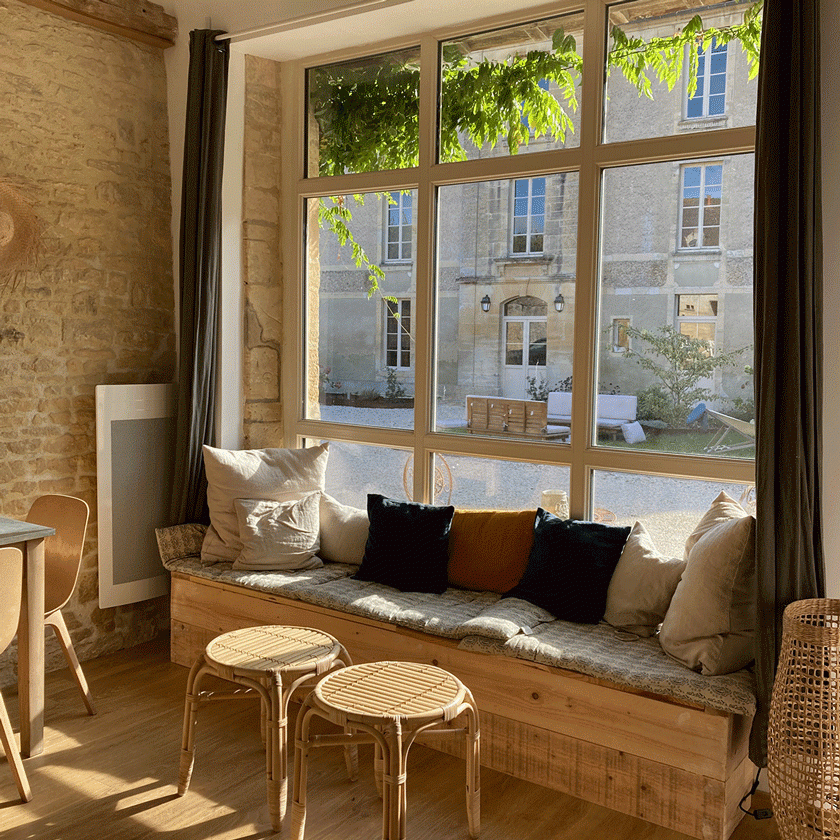 Il a fallu se retrousser les manches et surement s’armer de patience pour redonner vie à ce domaine en pierres blondes de Caen. Une chambre d’hôte, une deuxième, une autre… puis un gite, installé dans un ancien fumoir… On sent ici, entre Caen et Bayeux, légèrement en retrait des plages du débarquement, au cœur d’un bocage impeccable, que les choses ont été faites avec naturel, cœur et générosité. Et parce que les lieux s’y prêtent, calme et espace obligent, Le Domaine de l’Hostellerie organise désormais également des stages de yoga