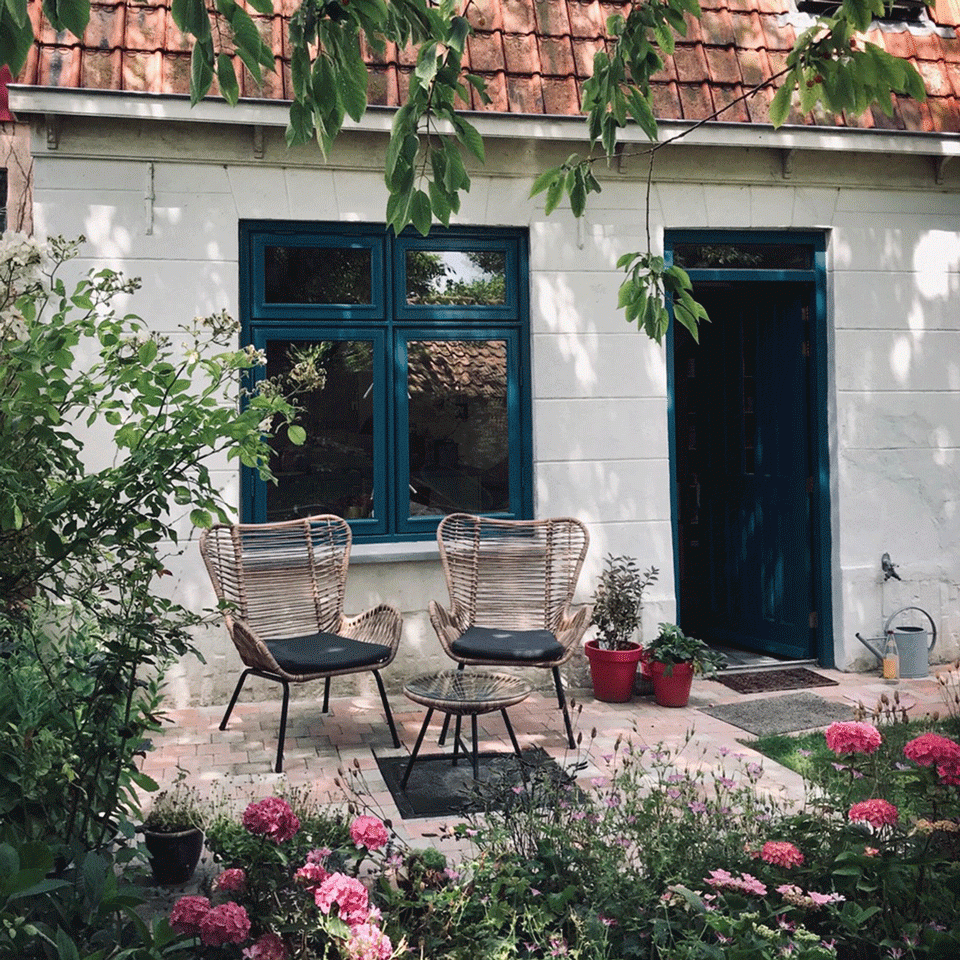 Dans ce minuscule hameau, à rien de là où elle a grandi, Iske a trouvé la maison de ses rêves. De cette batisse blanche toute simple et pleine de modestie, elle a fait un havre lumineux où se mêlent avec beaucoup de poésie chine (cuisinière Atag des années 60 ou baignoire sur pieds pattes de lion) et confort ultra contemporain avec chambre sous les combles. Juste à côté, elle a renouvelé l’exercice avec une seconde maison, tout aussi charmante… Enfourchez votre vélo, longez les polders puis l’estuaire de l’Escaut occidental, et enfin la Mer du Nord et ses plages XXL battue par les vents. A moins que vous n’empruntiez les anciennes routes des contrebandiers, sommes à 1 km de la frontière belge, et que vous vous retrouviez à Knokke…