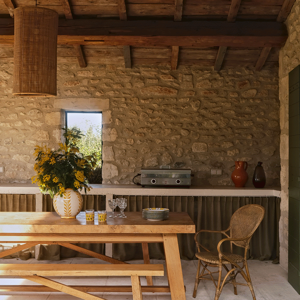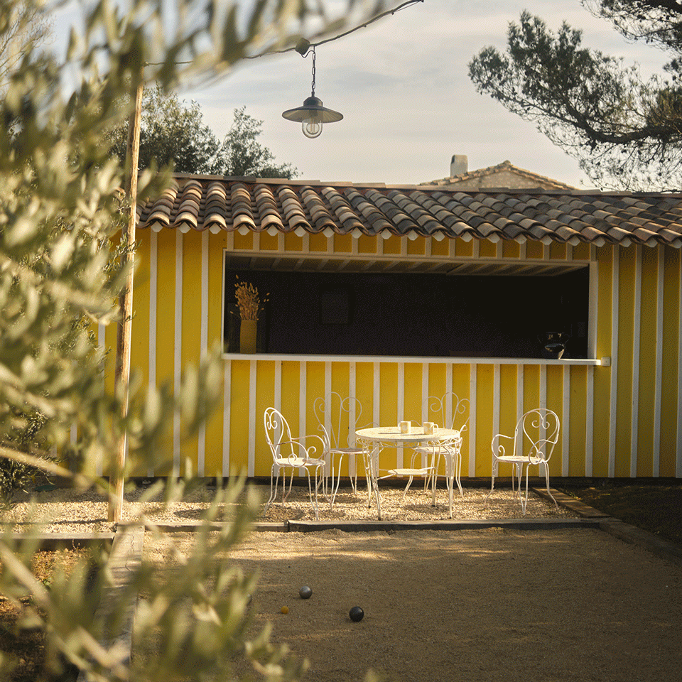 Et si cela ressemblait à ça le bonheur. Un mas, la lumière, une cabane pour les enfants peinte en blanc et jaune, un terrain de pétanque, un potager taille L et bientôt XXL où récolter fraises, melon, aubergines et courgettes aux beaux jours, la lumière toujours, celle du Sud, une terrasse couverte avec table XL où les soirées s’éternisent, des boutis et des têtes de lit fleuries, des rosiers blancs (Iceberg), la lumière encore, une piscine, un cahier à dessins et un jeu de carte siglés Au Pays Des Alpilles, une déco ultra léchée imaginé par le duo star Hauvette & Madani, des agapanthes et des œillets, la lumière… Et si Ma Maison au Pays des Alpilles ressemblait au bonheur. Un bonheur à partager…