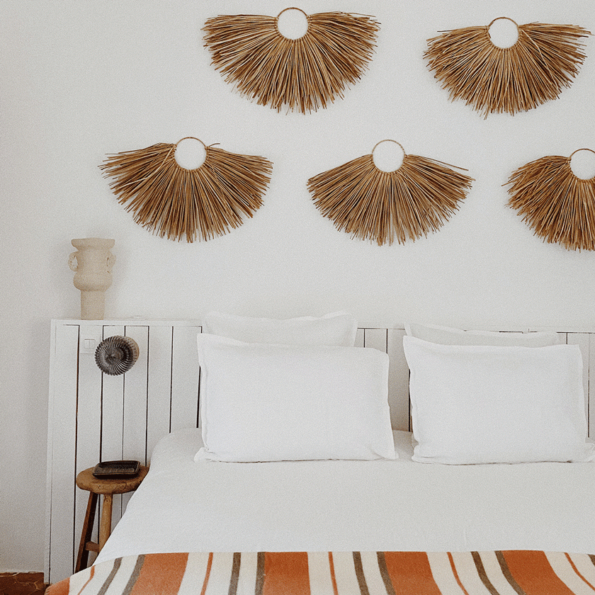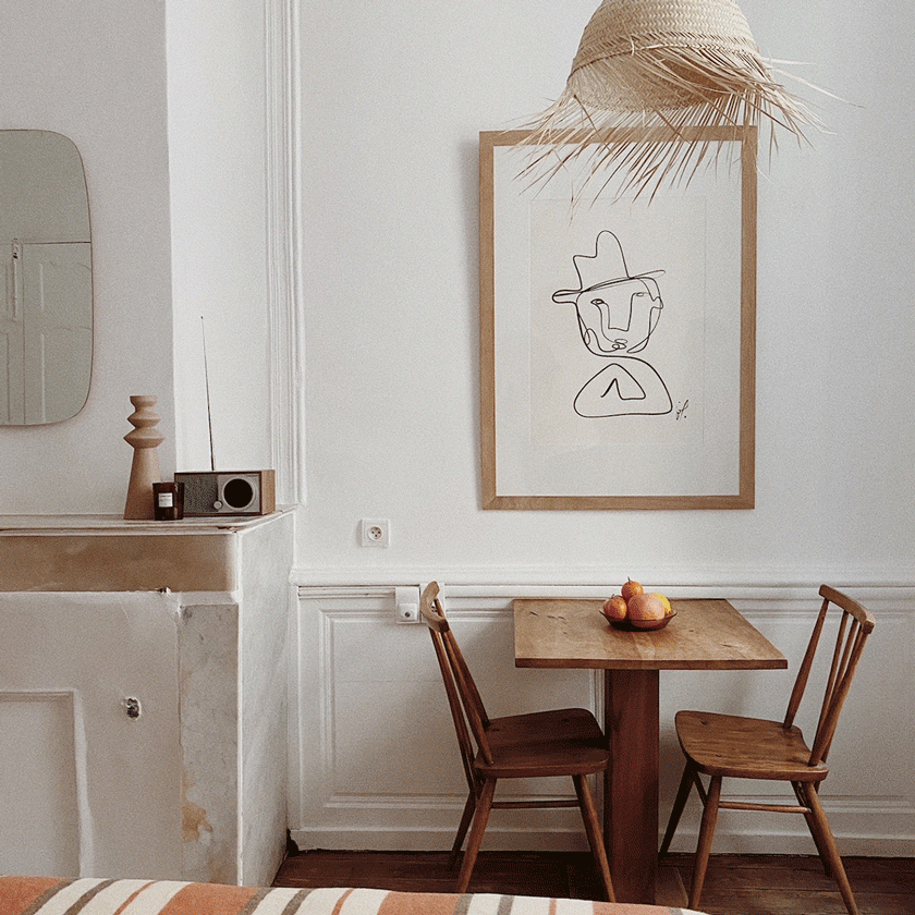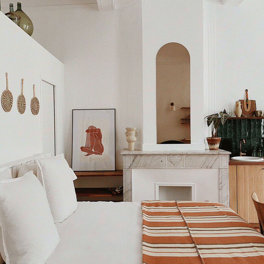 Une cour intérieure avec en son cœur un vieil acacia. Voilà pour le nom, ne cherchez plus. De cette grande maison de ville 18ème, donnant sur une rue piétonne, ils ont fait un modèle du genre. Des blancs, sous toutes les coutures et toutes les formes, des bruns, également parfaitement déclinés quelque soient les matières et soudain un aplat de vert, un chapeau mexicain en guise de suspension, une lampe en apparence complètement décalée, une collection de dame-jeanne. Difficile dans ces 4 studios de La Maison Acacia de faire plus magazine de déco imprimé sur papier mat recyclé. Et on ne voit aucune raison de bouder ce plaisir que de vivre dans un monde aussi parfait. Surtout quand c’est aussi solaire !