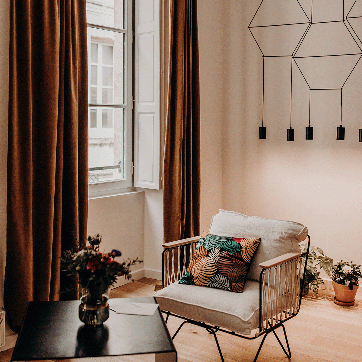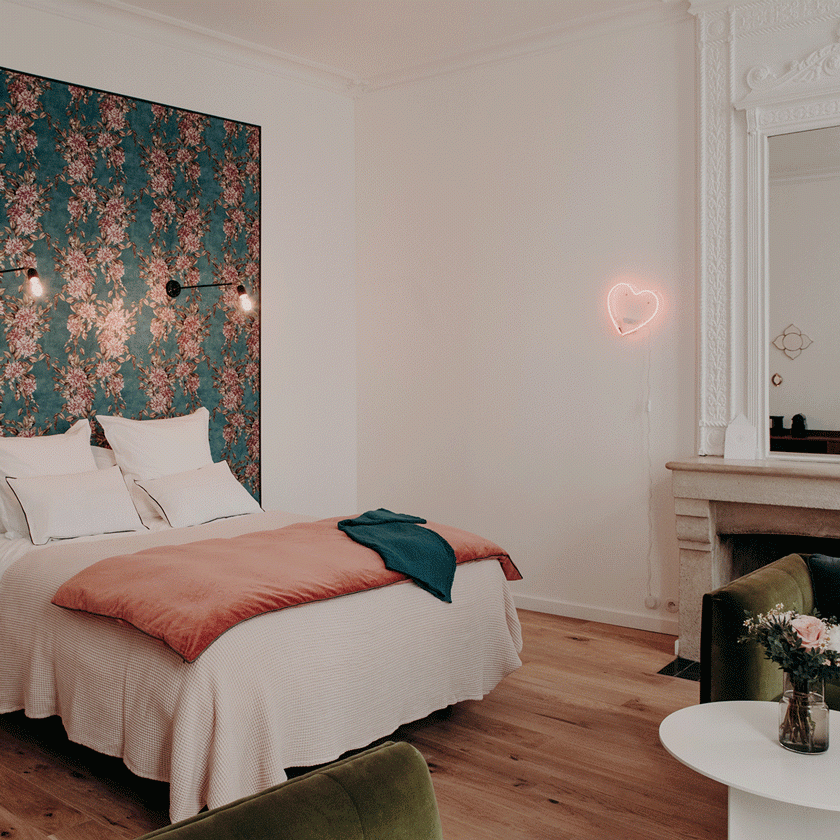 Difficile d’être plus en cœur de ville. Ne vous y trompez pas, cette maison d’apparence un peu bourgeoise est tout sauf compassée. Luminaires contemporains parfaitement choisis et parfois fort bien signés, papiers peints délicats sans jamais être mièvres, coloris subtils, moulures et cheminées de marbre, inspirations libres ; bref, vous l’aurez compris c’est déco. Mais pas seulement ! Quand certaines chambres donnent sur la très vibrante place Ferdinand Lafargue d’autres sur la plus calme rue aux Herbes, les hôtes disposent d’une terrasse sur le toit où peut être servi le petit-déjeuner. Coup de cœur pour la suite Rosa Bonheur et son balcon.