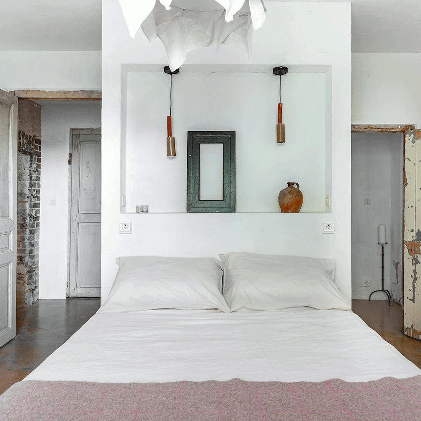 Parfois, on a envie de vider, d'ôter ce qui dépasse, d'épurer, de simplifier. On a envie de se sentir plus léger, de ne plus avoir à porter ces oripeaux de fatigues cumulées, à porter les charges émotionnelles d'objets en réalité inutiles. Anouck et Jean-Baptiste ont prouvé avec cette maison du Perche dit Sarthois (donc celui du Sud, là où la pierre se fait souvent plus blonde qu'au Nord) que c'était possible. Qu'il était possible de respecter l'âme d'une maison en l'allégeant, en simplifiant au maximum son usage ! Ici, rien n'est superflu, tout a un sens, sa place, une juste place. Adeptes du seconde main (elle a auparavant créé la marque @superchinerie, spécialisée dans les arts de la table vintage), ils ont chiné, récupéré, donné une nouvelle vie. Ça donne, au coeur de ces prairies réparties sur 2 ha, terrain de jeux de 2 ânes Charlotte et Paco, à cette Maison Légère, une âme à part. Qui pousse les hôtes au mieux, au bien; bien manger, bien dormir, bien vivre.
