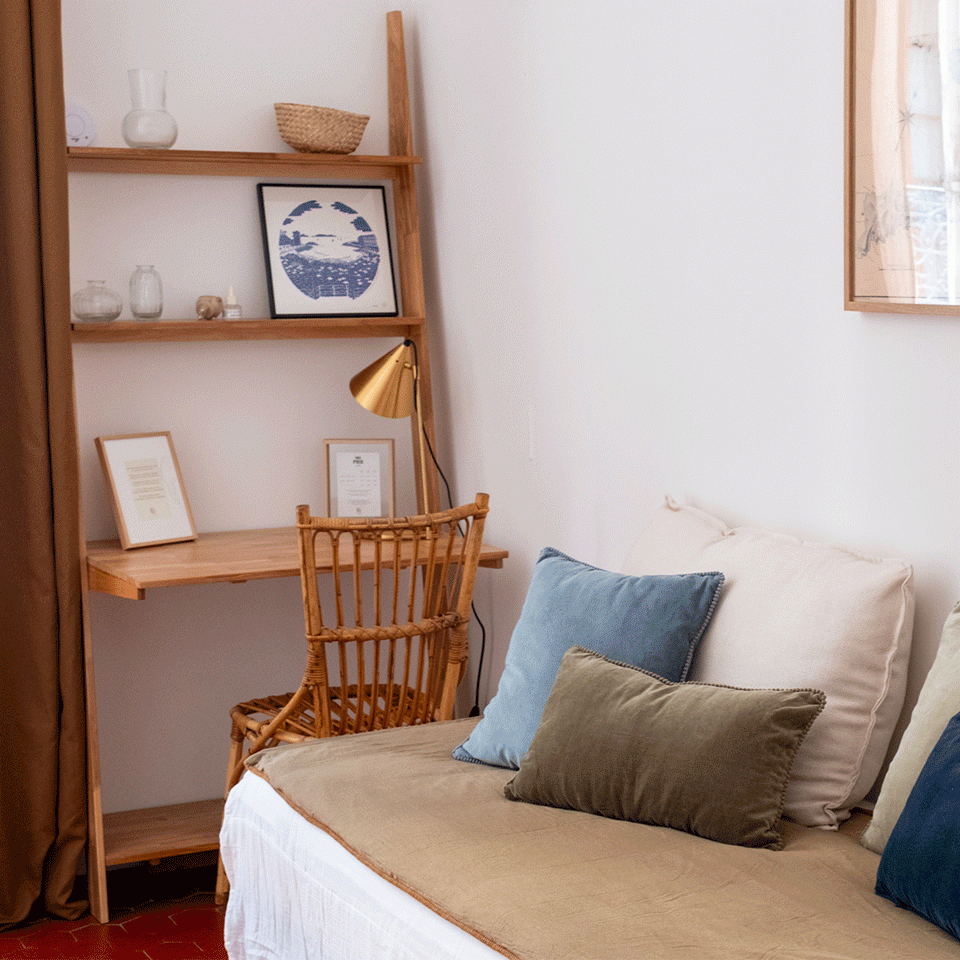 Autrefois cette maison du centre-ville accueillait une teinturerie ; sauvée de l’abandon il y a 30 ans tout rond, revampée, elle s’est transformée en maison de famille. Les enfants ayant grandi et quitté le nid, elle reste maison du bonheur pour des hôtes de passage. Ici, à deux pas de la Canebière, toute la vie tourne autour du patio au milieu duquel trône un olivier rapporté, un peu sans espoir, juste pour voir, d’un jardin familial du Var. Il s’est épanoui, est devenu l’emblème de la maison, jusqu’à lui donner son nom (Eleia en grec ancien veux dire olive), d’autres plantes ont suivi. Dans la Maison Olea, il n’y a pas d’artifices ou de faux-semblants. Les niches sont là parce qu’elles ont un sens, les cheminées et moulures itou. A la lumière du sud, ensuite, de faire le job et de faire résonner cet habile mix & match de chine et de trouvailles mis en scène avec la complicité de la décoratrice Frédérique Platat.