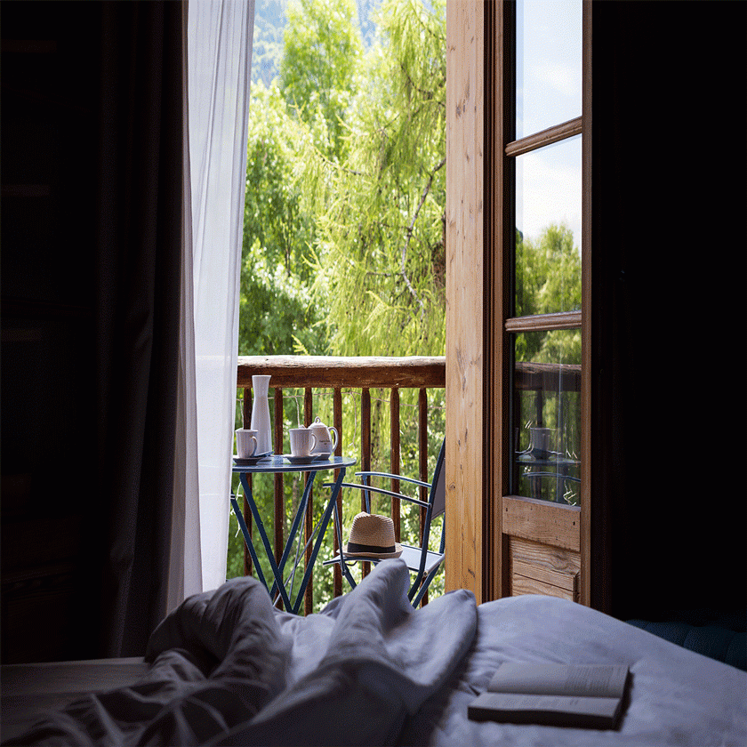 Pour en profiter pleinement il ne s’agit pas de s’arrêter à la table mais de prolonger le plaisir en logeant dans l’une des 5 chambres décorées chacune dans un thème alpestre (vache, lac, aviation, cerf et ski) mais sans aucun kitsch.