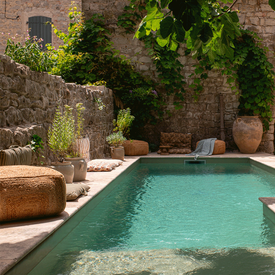 On les avait connus au cœur du Perche, ils y avaient imaginé D’une Ile – que Sofie et Michel ont vendu depuis-, on les avait retrouvés au cœur d’un autre parc, national cette fois, celui des Cévennes, face au Mont-Lozère. Les voici déjà avec cette deuxième maison d’une collection tendrement baptisée L’Heure Vide. Direction le sud de l’Ardèche, à rien des Vans, du bois de Païolive, des gorges de Chazzesac, dans une ancienne magnanerie, une ravissante maison de village avec boutique en rez-de-chaussée, cour ombragée et jardin clos. Une maison lumineuse où se mêlent jolies signatures du design, contemporain (Sancal, Driade) mais pas seulement (Jean Prouvé), et chine pleine de modestie. La literie, elle, est signée Cocomat, le nec plus ultra made in Greece, le linge, de la marque indo-hollandaise Khasto. L’esprit bohème dans ce qu’il a de plus désirable.