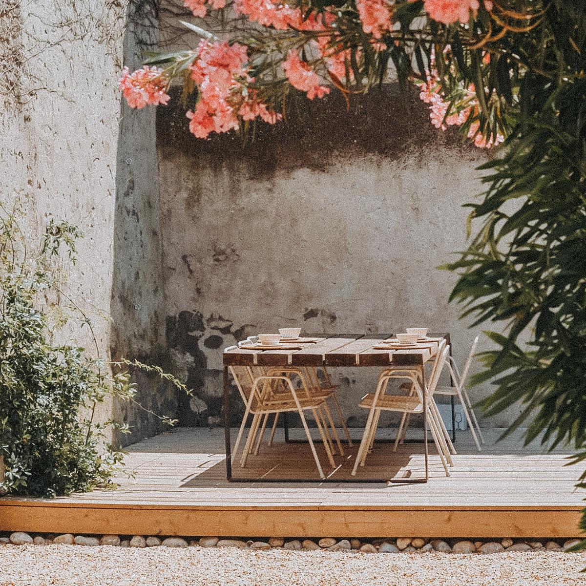 Une escale lumineuse aux portes de la Bastide Saint-Louis. C’est autour d’un joli jardin intérieur que sont disposés ces deux appartements et ce studio, tout trois full équipés et très kids friendly. Quelques lauriers roses et une longue table en bois brut pour l’extérieur et une déco sobre, fine et lumineuse pour l’intérieur. Pas de surenchère chez Tribus, mais beaucoup de précision et surtout d’exigence dans les détails. Idéalement placé, suffisamment à l’écart pour éviter les flots de touristes qui envahissent la Bastide Saint-Louis et la Cité Médiévale, suffisamment proche pour y déambuler à l’envi.