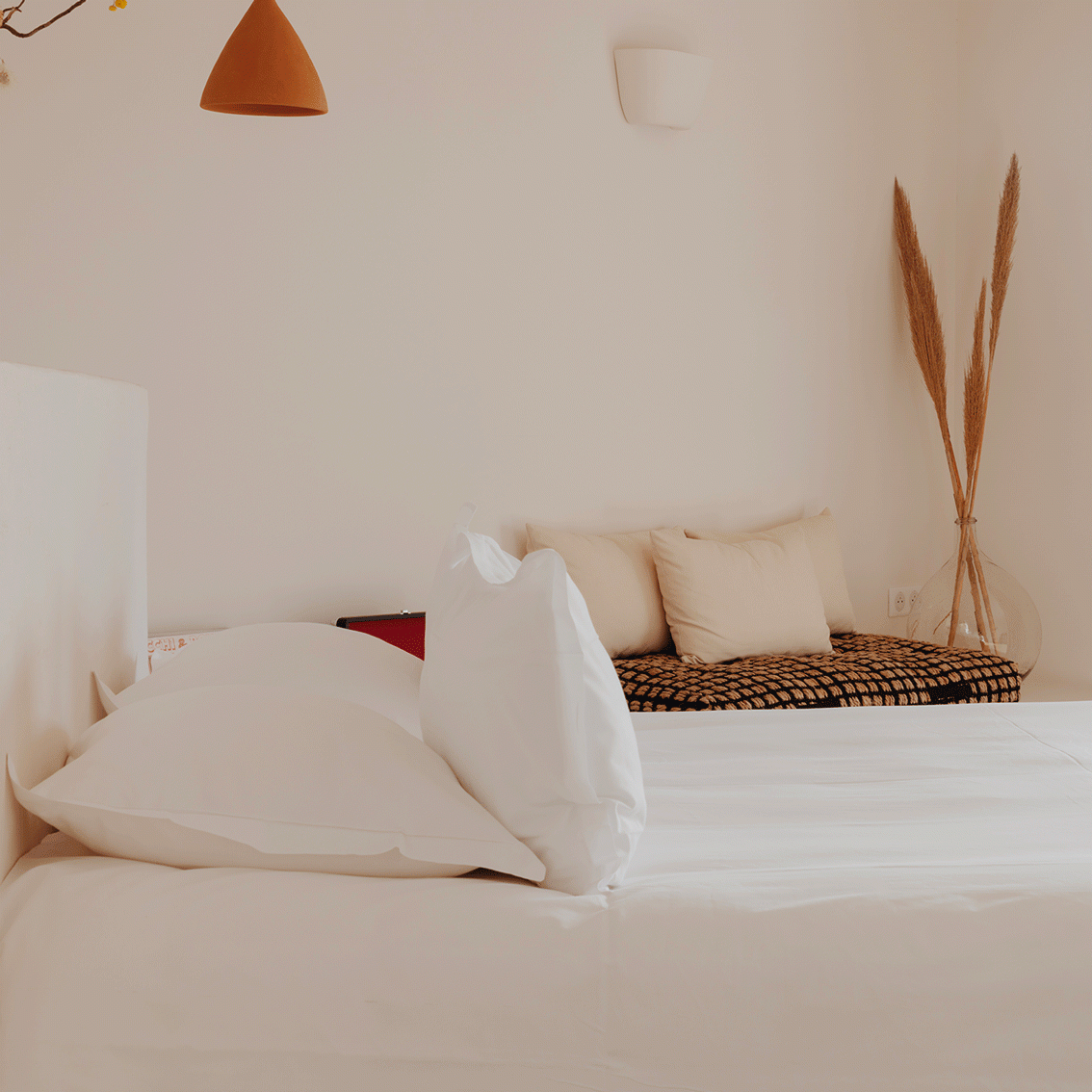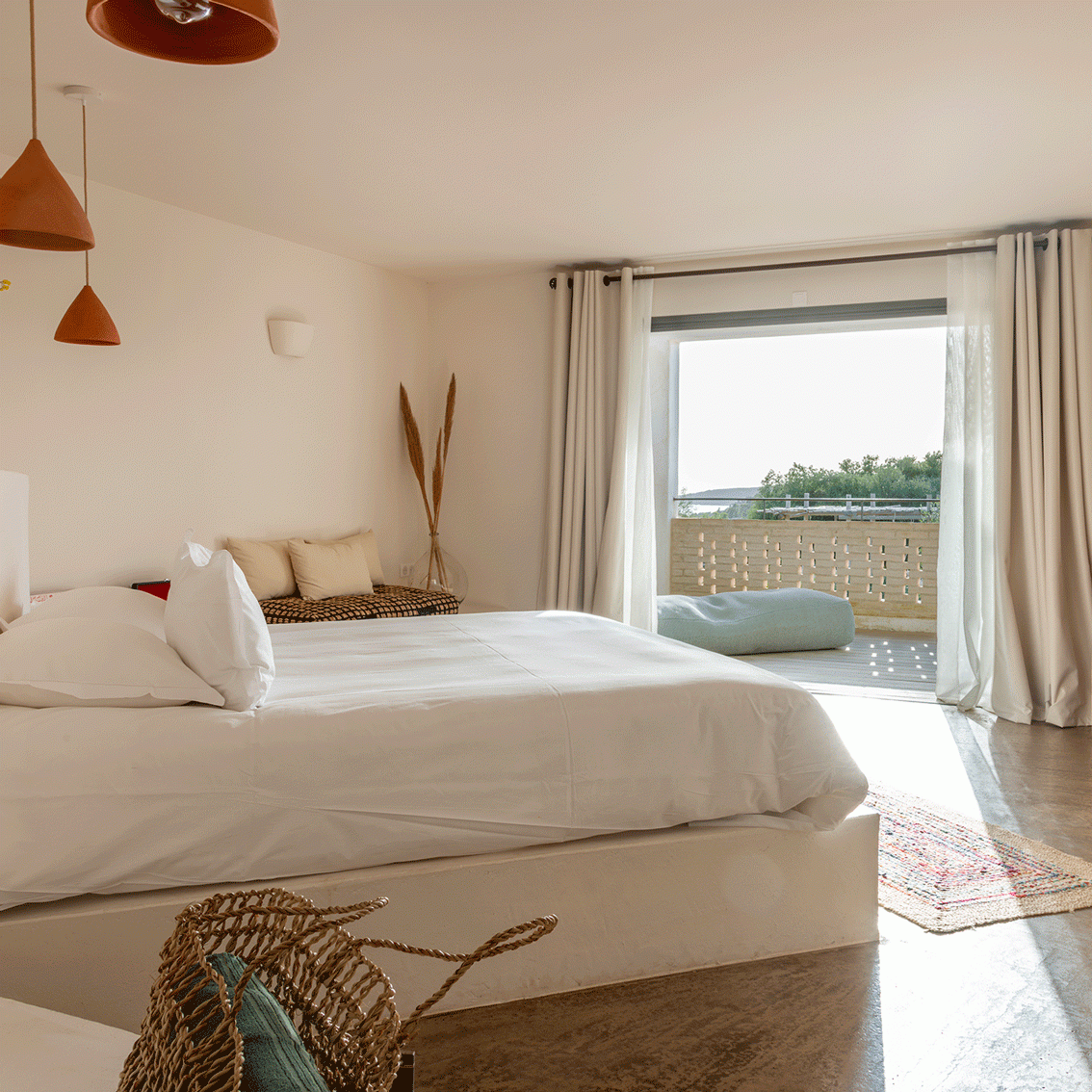 Parfois, il suffit d’un peu de chance ; à condition de la saisir avec le courage nécessaire. Un terrain avec les fondations de ce qui aurait pu être un immeuble d’appartements, abandonné depuis une quinzaine d’années, au cœur du maquis, à quelques tours de roue de Cargèse, auquel il fallait redonner vie : l'opportunité de réaliser un rêve. Ils vont conserver les fondations, tourner autour, penser deux bâtiments avec une quinzaine de chambres XXL, installer un couloir de nage pour les réunir, distiller ici et là, comme des clins d’œil pour initiés, ce qu’ils ont aimé, apprécié lors de leurs nombreux voyages, distiller, ici encore, sa passion à elle. Ancienne DJ, elle imagine, pour la Villa Flaka, des playlists (que l’on peut aussi retrouver sur le site), dispose dans certaines chambres des platines et disques vinyl. Ils aiment la gastronomie, ils créent un festival culinaire, en juillet, et y invitent des chefs. Ajoutez une salle dédiée à la pratique du yoga, des bains de gong régulièrement organisés, la mer à portée de vue ; une gestion raisonnée de l’énergie et de l’eau, un potager en permaculture (pour les petits-déjeuners)… De quoi porter un regard neuf sur cet Ouest corse.