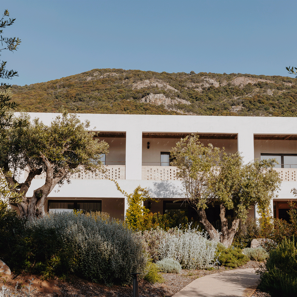 À deux pas de Cargèse, une friche au cœur du maquis devient Villa Flaka : 15 chambres XXL, piscine, DJ booth, yoga, potager en permaculture, festival culinaire… Un lieu hybride, rêve éveillé d’un couple inspiré par leurs voyages.