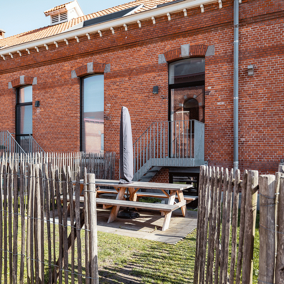 Des dunes, une mer du Nord aux couleurs toujours changeantes, et à un battement d’ailes de mouette de la plage, une résidence de vacances pour couples ou familles. @villaplage.be est un grand triplex situé dans l’un des bâtiments de briques rouges d’un ancien hôpital militaire transformé en quartier résidentiel branché. C’est là que Natacha et Youri ont aménagé cet espace de vie clair et lumineux, parfaitement adapté aux retours de ballades au grand air, avec sa cuisine super équipée, et même en cas de flemmardise extrême la possibilité de se faire livrer, petit dej, apéro et d’avoir des repas concoctés à domicile par la cheffe Manon Dumon @manon.food. Les hôtes ont pensé à tout : aux vélos, aux jeux, au très bon café, à la bière et au vin dans le frigo (payants), au barbecue, au système Sonos, à Netflix et au city guide avec les adresses cools d’Ostende, dont le centre se rejoint en quelques minutes grâce au ferry.